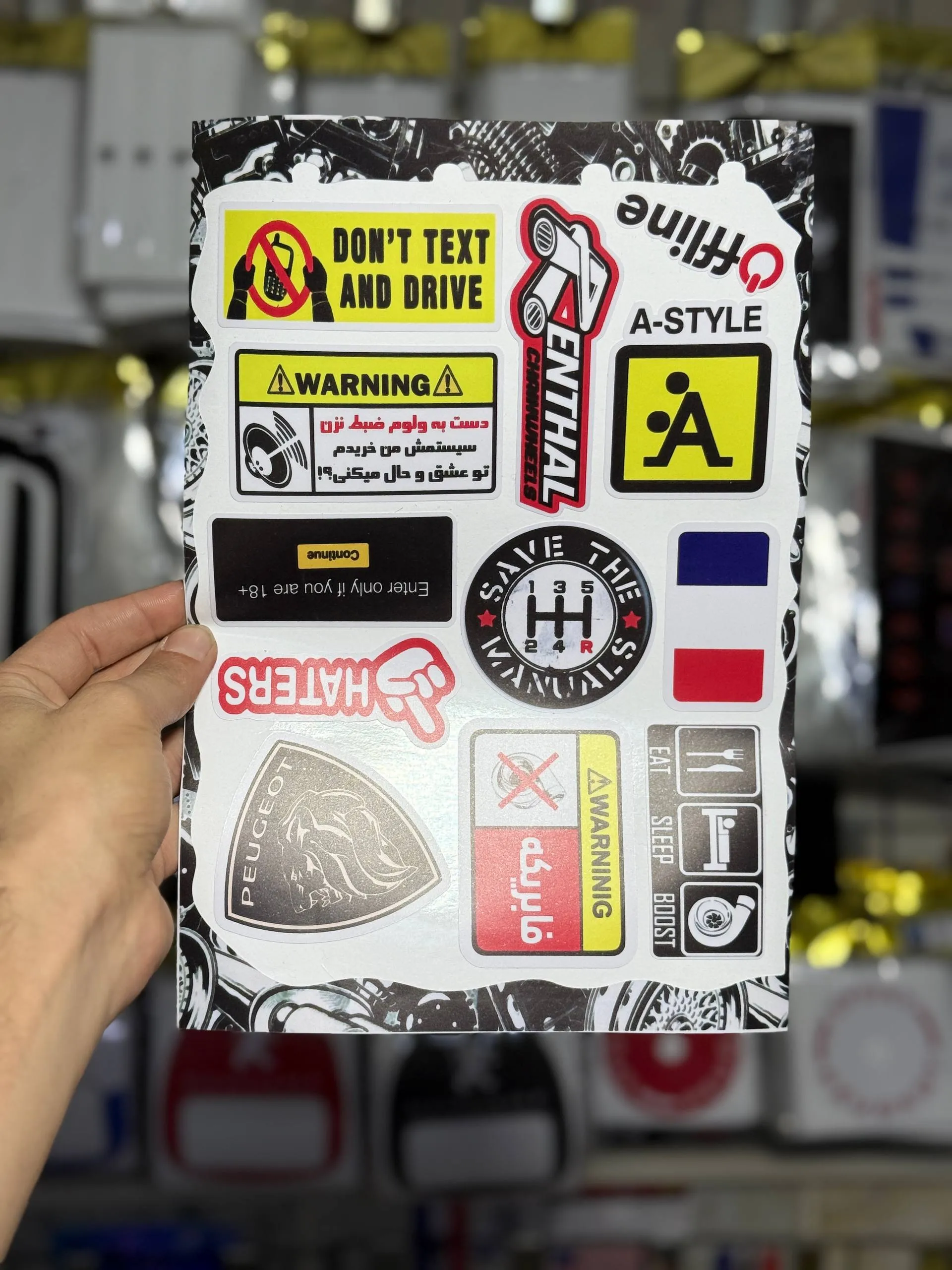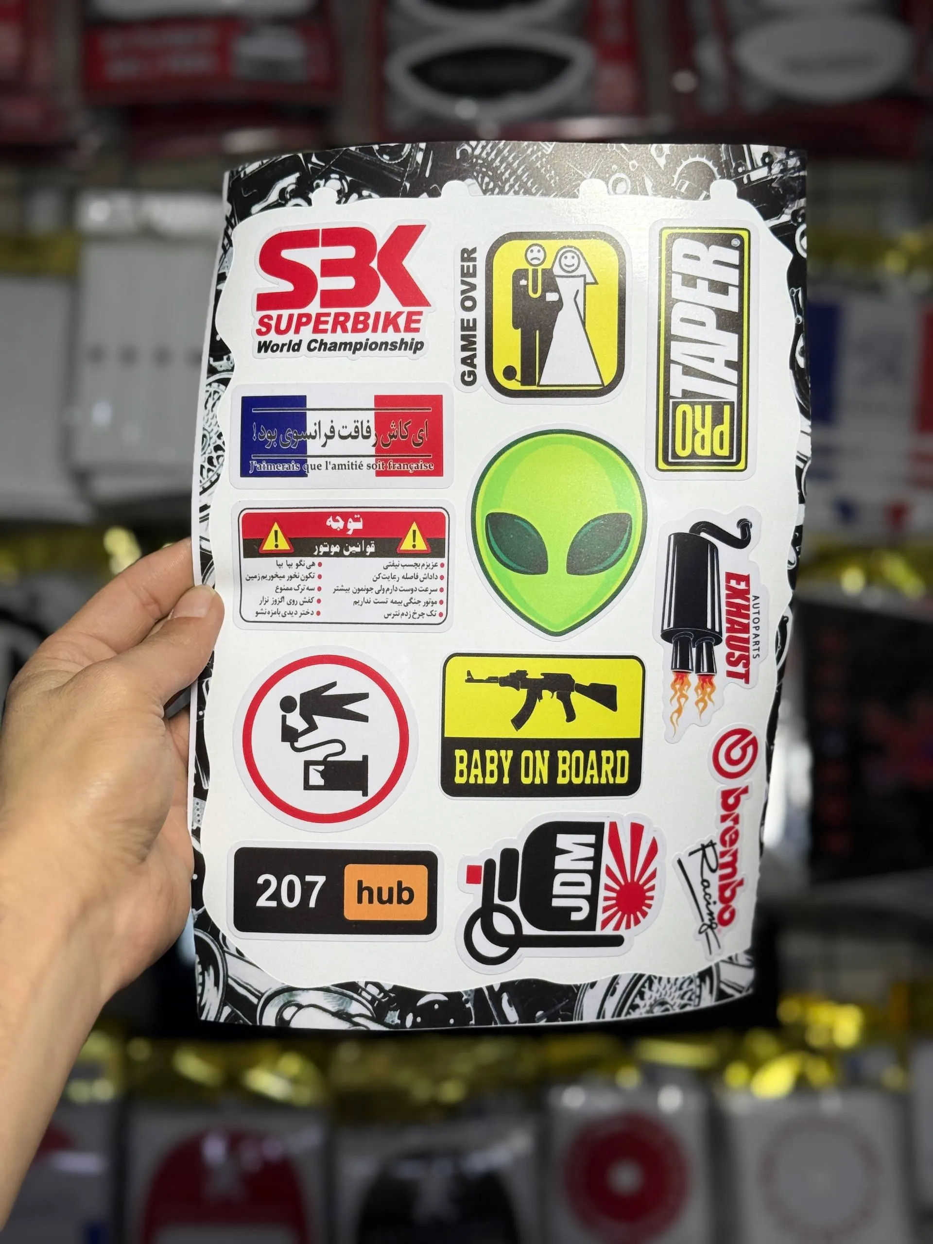 تمام استیکرها سلفون‌دار، براق، ضدآب و مقاوم هستن و کیفیت چاپ بسیار بالایی دارن؛ به‌طوری که روی لپ‌تاپ، گوشی، دفتر، داشبورد، بدنه موتور و حتی سطوح خارجی خودرو قابل استفاده‌اند.